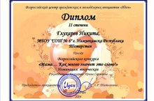 Поздравляем Глухарева Никиту, призера II степени Всероссийского конкурса "Мама... Как много значит это слово!" (педагог Глухарева И.С.)