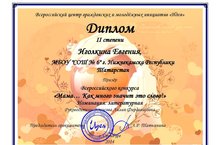 Поздравляем Иголкину Евгению, призера II степени Всероссийского конкурса "Мама... Как много значит это слово!" (педагог Юнусова Л.Ф.)