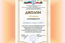 19 декабря на базе Института экономики, управления и права прошла II муниципальная научно-практическая конференция «Динамика полиэтнических и поликонфессиональных отношений российской цивилизации». Поздравляем учащихся Насибуллину Ларину (научный руководитель - Хасанова М.В.), Николаеву Анастасию (научный руководитель - Юнусова Л.Ф.), занявших 3 место. Желаем дальнейших творческих успехов!!!