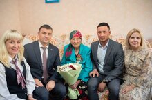 Совместно с заместителем руководителя Исполнительного комитета НМР РТ Рамазановым И.И., председателем СТОС микрорайона Руденко Ю.А., сотрудниками Управления социальной защиты поздравили жителя микрорайона Рашитову М.З. с Днём добра и уважения. В 2024 году Магфира Закиевна отметила 100-летний юбилей.