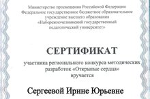 Учитель русского языка и литературы Сергеева Ирина Юрьевна приняла участие в Региональном конкурсе методических разработок "Открытые сердца".