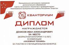 Поздравляем обучающегося 3Б класса Денисова Ивана, занявшего I место в IV Муниципальном конкурсе "Оружие Победы", посвященном Великой Победе советского народа в Отечественной войне 1941-1945гг. Макет в номинации "Наземная техника" мальчик подготовил под руководством своего отца.