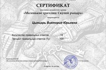 Ученица 11 класса Цынцарь Виктория приняла участие в онлайн-викторине "Маленькие трагедии: Скупой рыцарь" (учитель русского языка и литературы Сергеева Ирина Юрьевна).