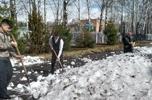 Обчающиеся 6-7 классов принимают активное участие в акции "Эковесна -2024", осуществляя рыхление снега на территории школы.
