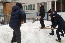 Учащиеся 5Б класса активно участвуют в уборке школьной территории от снега.