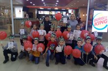 На осенних каникулах учащиеся 1А класса побывали на экскурсии в Бургер Кинге. Оказывается, Бургер Кинг – это не только вкусно, но и интересно, познавательно! Для ребят провели экскурсию, мастер-класс, дегустацию, вручили сертификат и подарки. Было здорово!