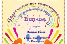 Поздравляем Идиятова Айдара и Сидорова Тимура учеников 8 а класса с дипломом 2 степени муниципального конкурса детского творчества "Дружно, смело, с оптимизмом, за здоровый образ жизни" Свою работу ребята назвали "Школа - территория здоровья"