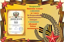 Учащиеся 7а класса ежегодно участвуют во Всероссийских конкурсах посвященных 9 мая. Никитин Алеша стал победителем викторины "ВЕЛИКАЯ ПОБЕДА", в номинации" Великой Победе посвящется"