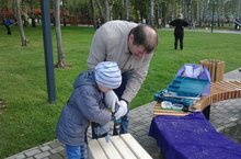 18 сентября в Парке СемьЯ состоялся мастер-класс «Папа может все!». В мероприятии принимал участие папа ученика 1в класса Сафин И.М. Жителям города он преподал мастер – класс по изготовлению нужного в любом хозяйстве предмета интерьера – скамейки! Учимся у пап мастерству!!!!
