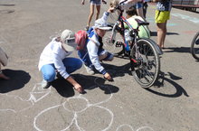 8 июля праздник «День семьи, любви и верности». Учащиеся пришкольного лагеря устроили конкурс рисунков на асфальте «Ромашка-символ семьи»
