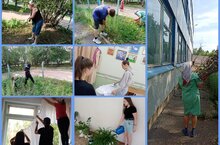 В школе, несмотря на летние каникулы, кипит жизнь. Долой сорняки! Пришкольный участок преображается. Мальчишки и девчонки 6а класса (классный руководитель Гараева Э.Р.), вооружившись садовым инструментом, пропалывают грядки, рыхлят и поливают почву, ухаживают за комнатными цветами.