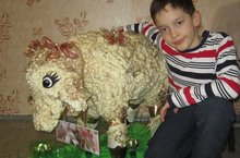 Ученик 3 А класса Харитонов Айдар вместе с родителями изготовил поделку к конкурсу. Получился прекрасный символ Нового 2015 года. Овечка сделана из бросового материала (использованные пластиковые бутылки).Желаем Айдару победы на конкурсе.