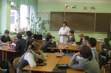 ,,Әкияттә кунакта” темасы буенча 5 нче В сыйныфының рус төркемендә әдәбият дәресе үткәрелде (укытучы Зәйдуллина Э.Ф.). Дәреснең актуальләштерү этабында әкиятләр турында әңгәмә үтте. ,,Өч кыз” татар халык әкияте сәхнәләштерелде. Дәреснең максаты – укучыларны мөстәкыйль фикер йөртергә, укыганнардан һәм сөйләгәннәрдән чыгып, нәтиҗә ясарга өйрәтү; әниләргә карата шәфкатьлелек, миһербанлык, мәхәббәт хисләре тәрбияләү иде. Бу дәрес укучыларга аеруча ошады. Чыннан да, мондый дәрес төре укучыларның иҗади сәләтләрен ача, бер-берләренә ярдәмчелек, теләктәшлек хисләре тәрбияли. Оялу, кимсенү кебек тискәре сыйфатларны булдырмаска ярдәм итә.