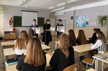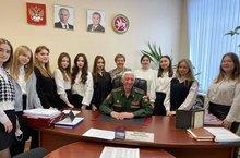 В рамках профориентации и в канун праздника «День защитника Отечества» ученицы 11А класса (кл. рук. Салахутдинова Л.С.) посетили городской военкомат. Перед учащимися выступила Алия Равилевна Шакурова, которая ознакомила девочек с правилами поступления в военные училища.