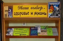 В рамках месячника профилактики правонарушений и наркомании среди несовершеннолетних в библиотеке была оформлена тематическая выставка «Наш выбор – здоровье и жизнь», направленная на формирование у подростков негативного отношения к употреблению наркотиков, алкоголя и табачной продукции, на приобщение к здоровому образу жизни и занятиям спортом.