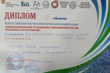 Сегодня на базе НХТИ КНИТУ состоялась Всероссийская научно- практическая конференция «Межнациональные отношения в современной России», на которой выступила ученица 10 а класса Андреева Ксения. Ее работа была удостоена диплома 3 степени.