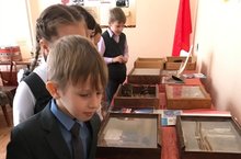 Руководитель школьного музея Сидорова О.Н проводит для учащихся школы обзорную экскурсию по музею. На этот раз гостями стали ученики 1 классов. Ребята умеют задавать вопросы.,их интерес вызвал материал о нашем первом директоре школы