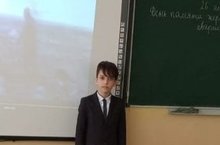 Никита поделился с одноклассникми воспоминаниями дедушки. Классный час завершился минутой молчания.