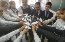 В память о погибших в Чернобыльской катастрофе 26 апреля 1986 года ученики 5б класса изготовили бумажных журавлей.