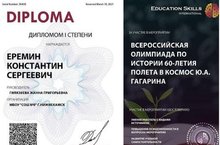 Поздравляем ученика 4Б класса Еремина Костю с I местом во Всероссийской олимпиаде по истории 60-летия полёта в космос Ю.А. Гагарина.