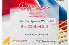 Поздравляем ученицу 9Б класса Козлову Арину, занявшую II место в муниципальном конкурсе военно-патриотической песни «От героев былых времён...», в номинации «Сольное исполнение».