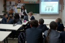 Ученики 7в класса с большим интересом участвуют в командной игре, организованную студентами КИУ.