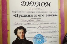 Ученица 11 класса Гиждеван Анна стала Призером во Всероссийском конкурсе "Пушкин и его эпоха" (город Наб.Челны). Руководитель: Джаппарова С.К.
