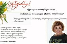 Поздравляем нашу дорогую и любимую Нуриеву Рамзию Фарвазовну с победой в конкурсе на Грант Главы Нижнекамского муниципального района в номинации «Лидер в образовании»!
