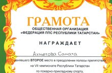 13-14 ноября в г. Казани прошел VII чемпионат Республики Татарстан по пожарно-прикладному спорту, посвященный памяти Н.М. Лобова. В составе команды г.Нижнекамска выступили учащиеся нашей школы из 8 класса Ахметов Самат и Смирновы Станислав и Владислав. Самат занял II место в преодолении полосы препятствий, Станислав занял III место среди юношей младшей возрастной группы. Команда города заняла почетное II МЕСТО. Поздравляем наших ребят и желаем им дальнейших успехов!