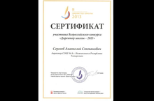 Директор школы Сергеев Анатолий Степанович получил Сертификат учасника Всероссийского конкурса "Директор школы -2013"