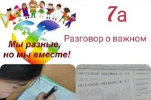В ходе проведения классного часа в 7А классе на тему "Мы разные, мы вместе!". (кл. руководитель Бутлеровская Э.М) учащиеся пришли к выводу: