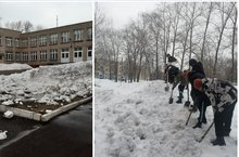 В рамках эковесны2022 учащиеся школы 8,10 классов рыхлят и разбрасывают снег на территории школы#образованиенк #эковесна2022 #нижнекамскЭковесна2022