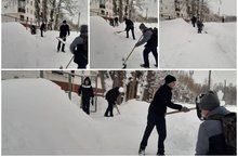 Мальчики 7В класса на уборке территории от снега. 04.02.2022