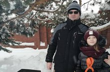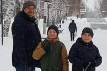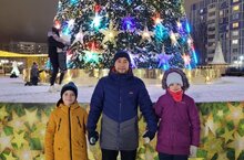 Каникулы с папой.Никулова Полина,ученица 4а класса, с братиком Димой и любимым папой на лыжной прогулке 08.01.2022
