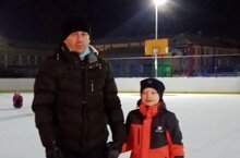 Ученик 2Б класса Сидеряков Станислав с папой на коньках 10.01.2022