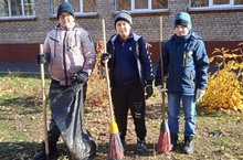 Ученики 5А класса не остались в стороне. Усердно убирают закрепленную за классом территорию. Глаза боятся, руки делают. Молодцы!