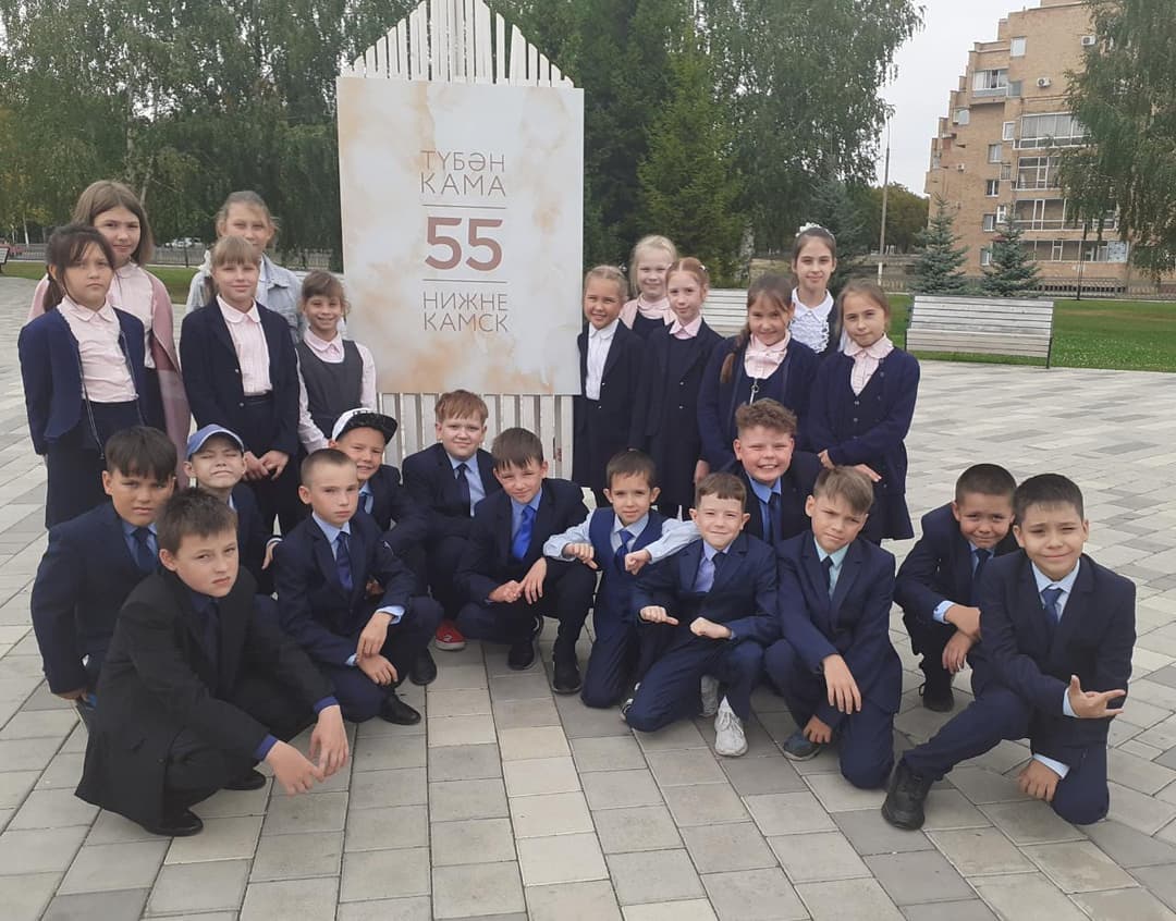 Сегодня у учащихся 4 В класса прошёл классный час на открытом воздухе, посвящённый 55 летию города Нижнекамска.