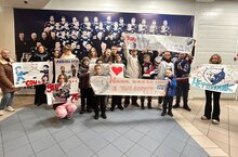 Ученики 1б класса вместе с классным руководителем и школьным библиотекарем подготовили замечательный подарок ко Дню народного единства — яркий и трогательный плакат с отпечатками детских ладошек