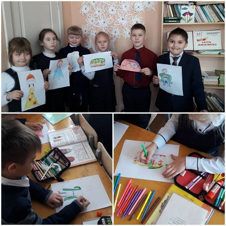 В рамках месячника родных языков ученики 2в класса иллюстрировали русский и татарский национальный костюм. -
