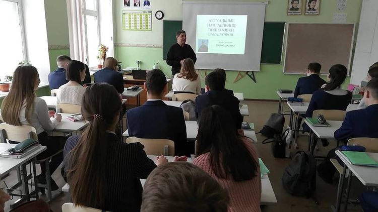 Встреча заведующего кафедрой "Интегрированные системы менеджмента" НФ КИУ Джано Джомаа с обучающимися 11а класса в рамках Дня науки. -