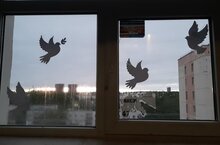 К мероприятию присоединилась и наша школа. Так, учащиеся 2Б класса совместно с классным руководителем Шараповой Ириной Александровной, с соблюдением мер безопасности украсили окна своего класса иллюстрациями и символами Победы, словами благодарности ветеранам. Для украшения ребята использовали самостоятельно изготовленные трафареты и аппликации, рисовали красками на окне.