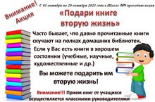 В школе проходит благотворительная акция «Подари книге вторую жизнь»!