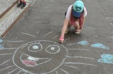 17 июня дети в пришкольном лагере участвовали в конкурсе рисунков на асфальте «Пусть всегда будет солнце».