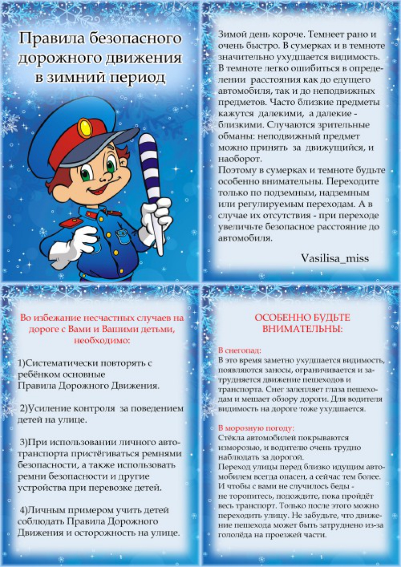 Правила безопасного дорожного движения в зимний период