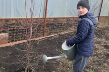 На родине своего прадедушки - Терентьева Василия Климентьевича, Аксубаевский район, село Старое Тимошкино, Георгий посадил саженец в саду в честь прадеда.