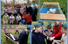 Военно-патриотическая эстафета в рамках мероприятий, посвящённых дню защиты детей прошла 21.05.17 г. среди учащихся школы. Ребята научились накладывать шину переносить раненого и преодолевали различные препятствия.