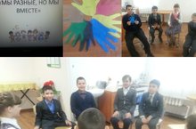 25.04.2017г. в рамках акции «Неделя добрых дел», психологом школы Миннибаевой Л.А. в 5Б классе проведена игра-тренинг «Мы все разные, но мы вместе». Занятие направлено на формирование толерантного отношения у детей друг к другу, понимания важности передачи эмоциональных связей, опыта толерантного поведения.