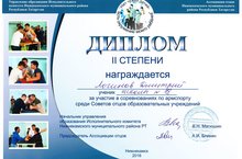 Кто они ? Армспорта родные сыны, новое племя спортивной страны. 22.10.16 при поддержке Управления Образования Нижнекамского муниципального района РТ были проведены соревнования по армспорту среди Совета отцов общеобразовательных учреждений города и Нижнекамского района. Нашу школу представили учащиеся 9а и 9в классов - Цимбал Леонид (IVместо) и Логинов Дмитрий (II призовое место!). Поздравления и Диплом IIстепени Диме вручали начальник УО НМР РТ Матюшин Вадим Николаевич и Председатель Ассоциации отцов НМР Бликин Андрей Иванович.