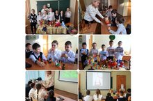 В классе их ждала импровизированная выставка игрушек, где можно было посоревноваться в свисте на глиняных свистульках, сделанных старшеклассниками на уроках труда; для развития координации — поймать мяч в бильбоке; уложить «спать» неугомонного Ваньку-встаньку и, наконец, самостоятельно смастерить вертушку на палочке — яркого Петушка.