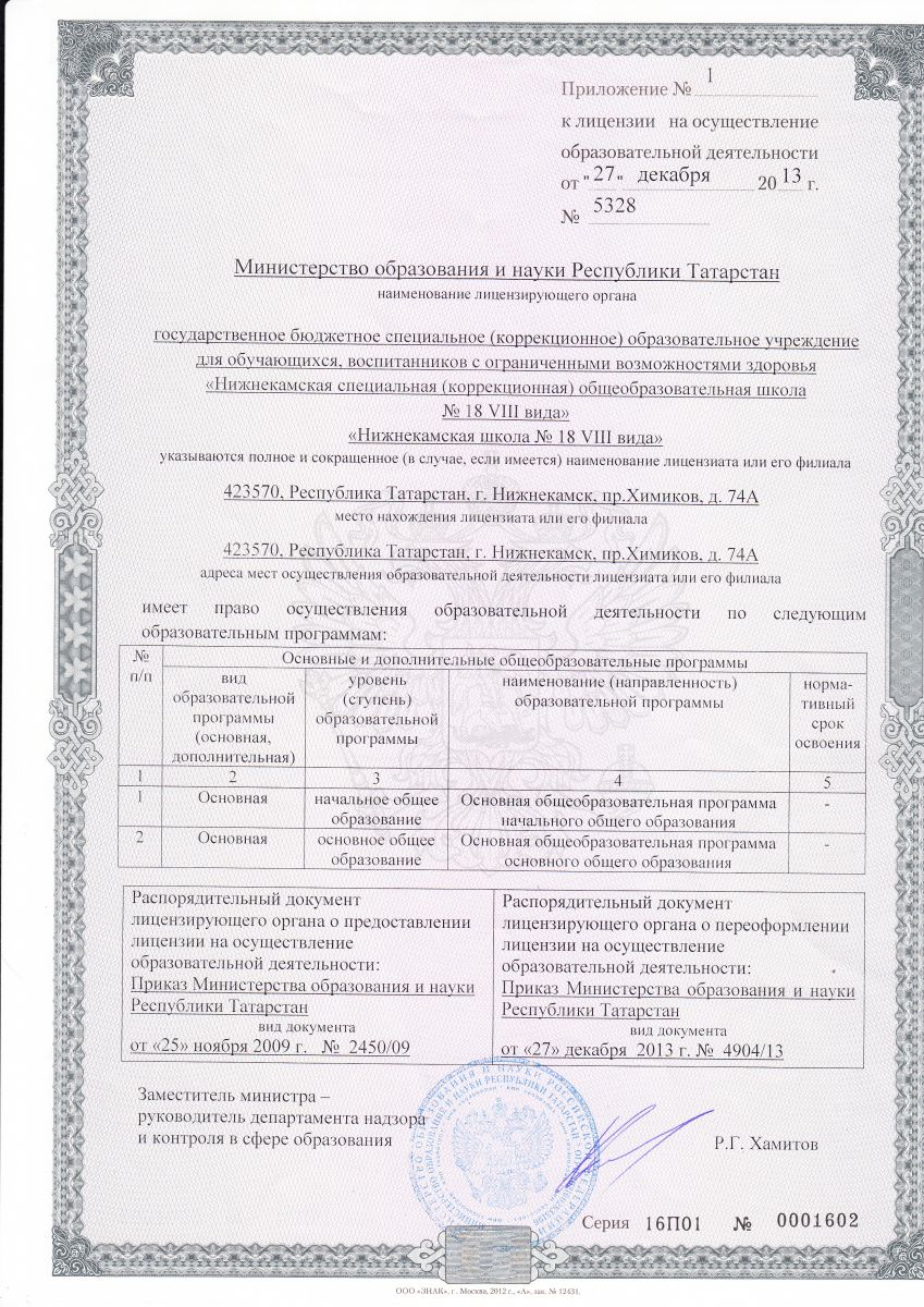 Государственное бюджетное общеобразовательное учреждение «Нижнекамская школа №18 для детей с ограниченными возможностями здоровья»
